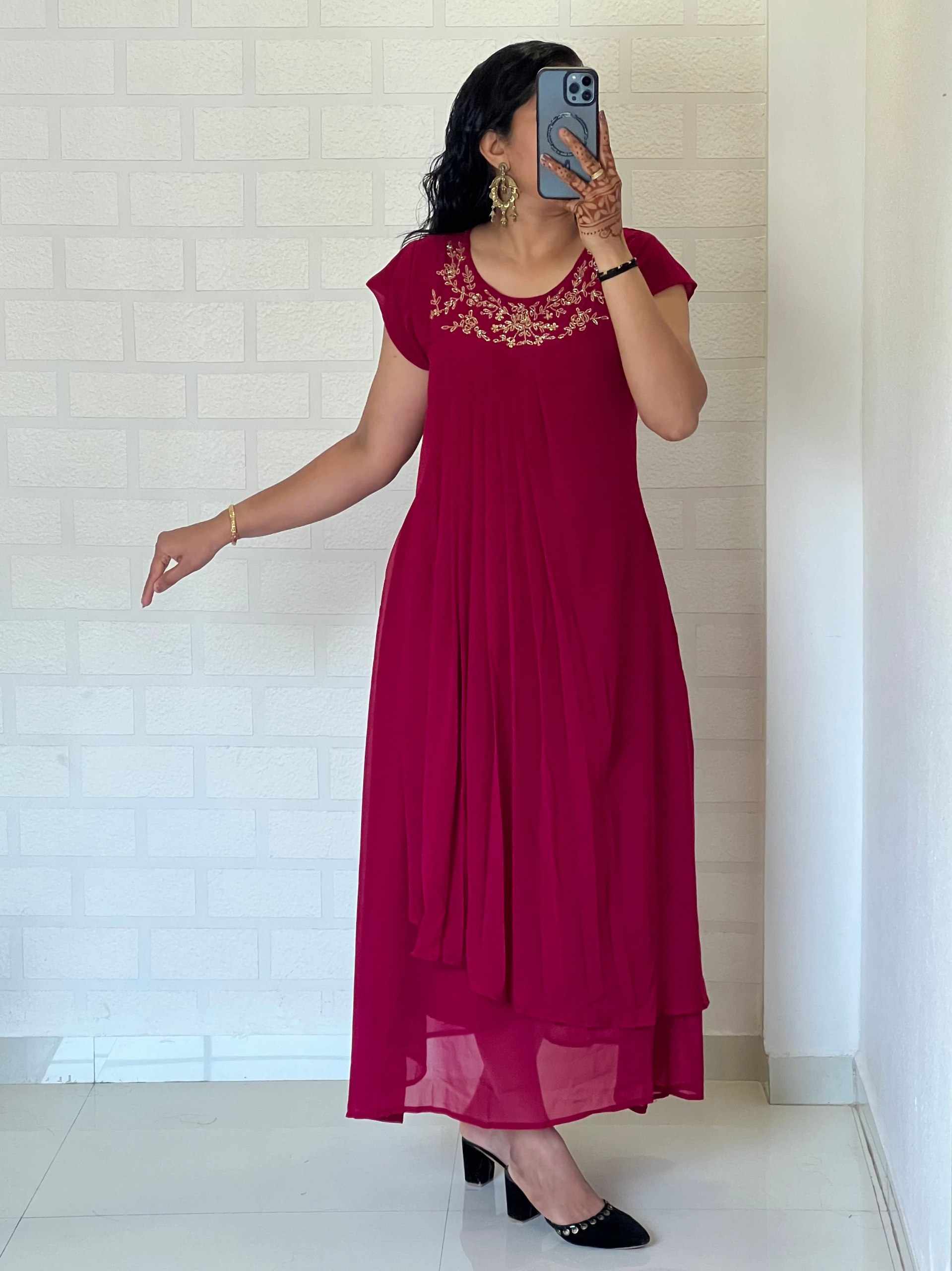 Reviews for WM13 PINK BLOOMING GEORGETTE DESIGNER KURTI